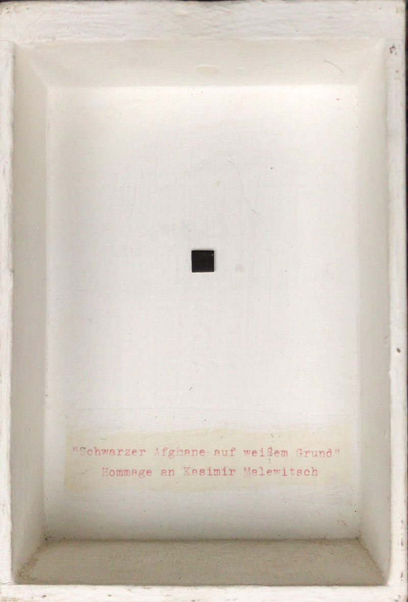 „Schwarzer Afghane auf weißem Grund“, 2015, 18x12x5 cm